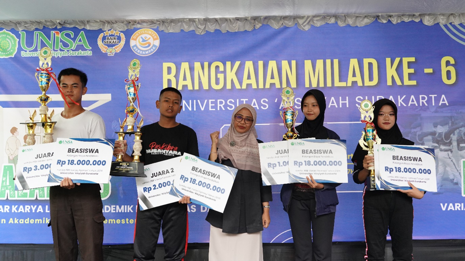 UNISA Surakarta memberikan penghargaan berupa uang pembinaan dan beasiswa pendidikan kepada para pemenang lomba sebagai bentuk komitmen institusi dalam mendukung akses pendidikan tinggi bagi pelajar berprestasi.